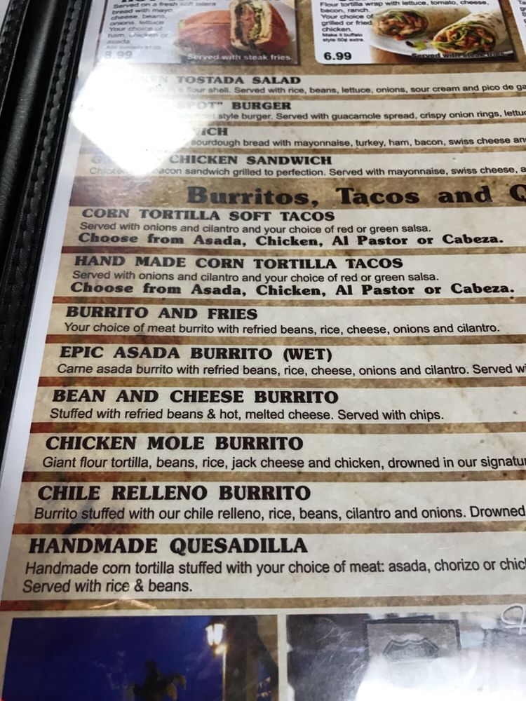 Steak fries, refried beans, cheese, pico de gallo, sour cream, guacamole, jalapeos, cotija cheese, choice of meat.
